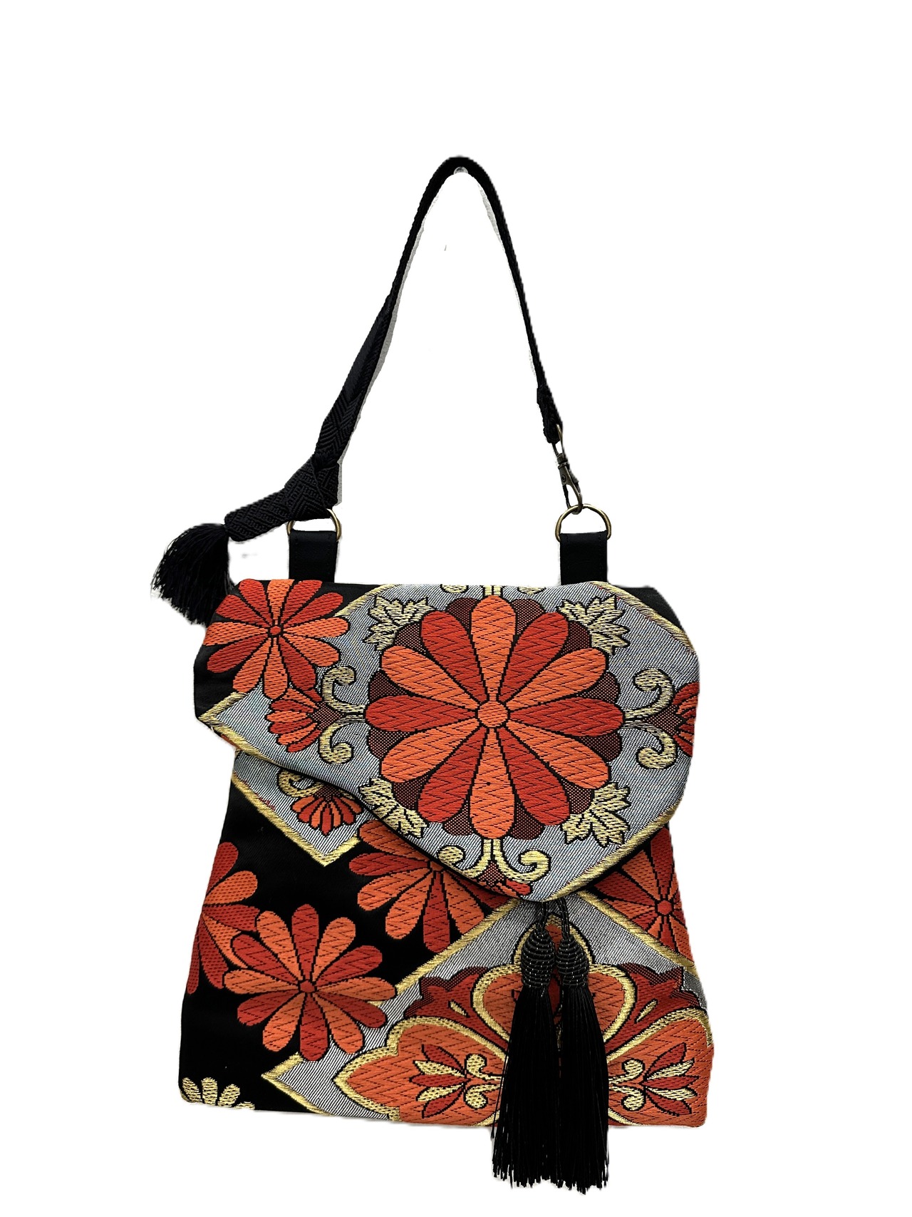 このバッグは、日本の伝統的な帯をアップサイクルして制作しました。