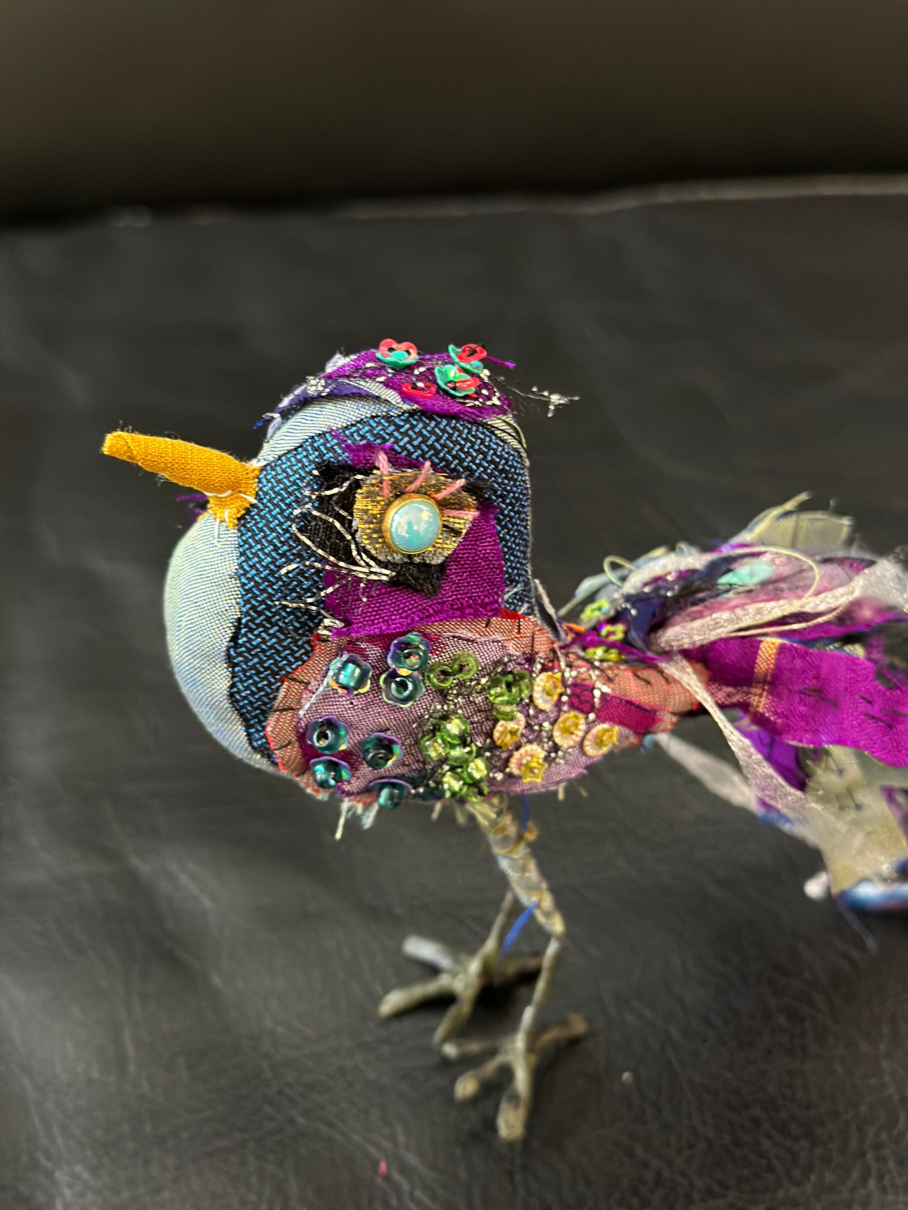 素材:鳥本体 絹、麻、綿、シルク、チュール、スパンコール、ビーズ、針金(足)など